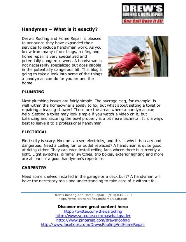 Many handymen say a van is hands down the best. Some of your work may be seasonal. One competent in a variety of small skills or inventive or ingenious in repair or maintenance work.