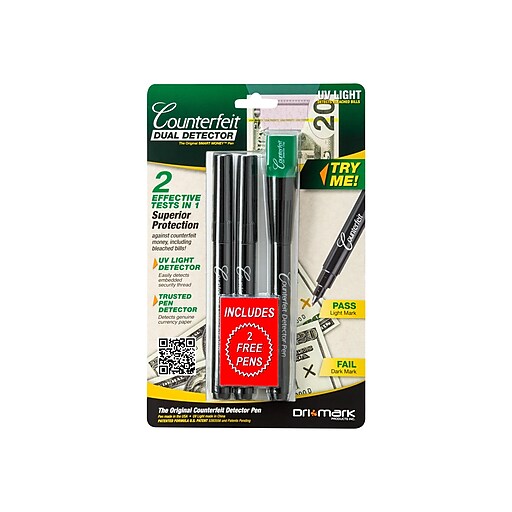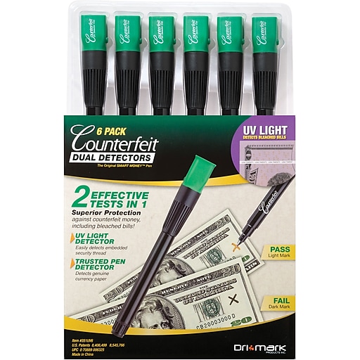 Up to 7 cash back Protect your business by using this Staples counterfeit detector pen to verify cash payments. Keep this Staples counterfeit detector pen in your cashbox or at the register to ensure youre accepting legitimate currency as payment. Up to 5 cash back Staples counterfeit detector pens provide a quick and easy way to verify bills in any cash handling environment.