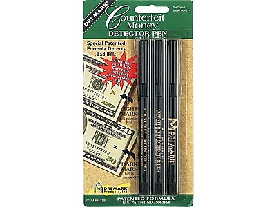 Up to 5 cash back Protect your business by using this Staples counterfeit detector pen to verify cash payments. The unique ink creates a dark mark on counterfeit currency while leaving authentic money free from damage. The iodine-based ink disappears completely on legal paper money but a dark stain remains on fraudulent bills.