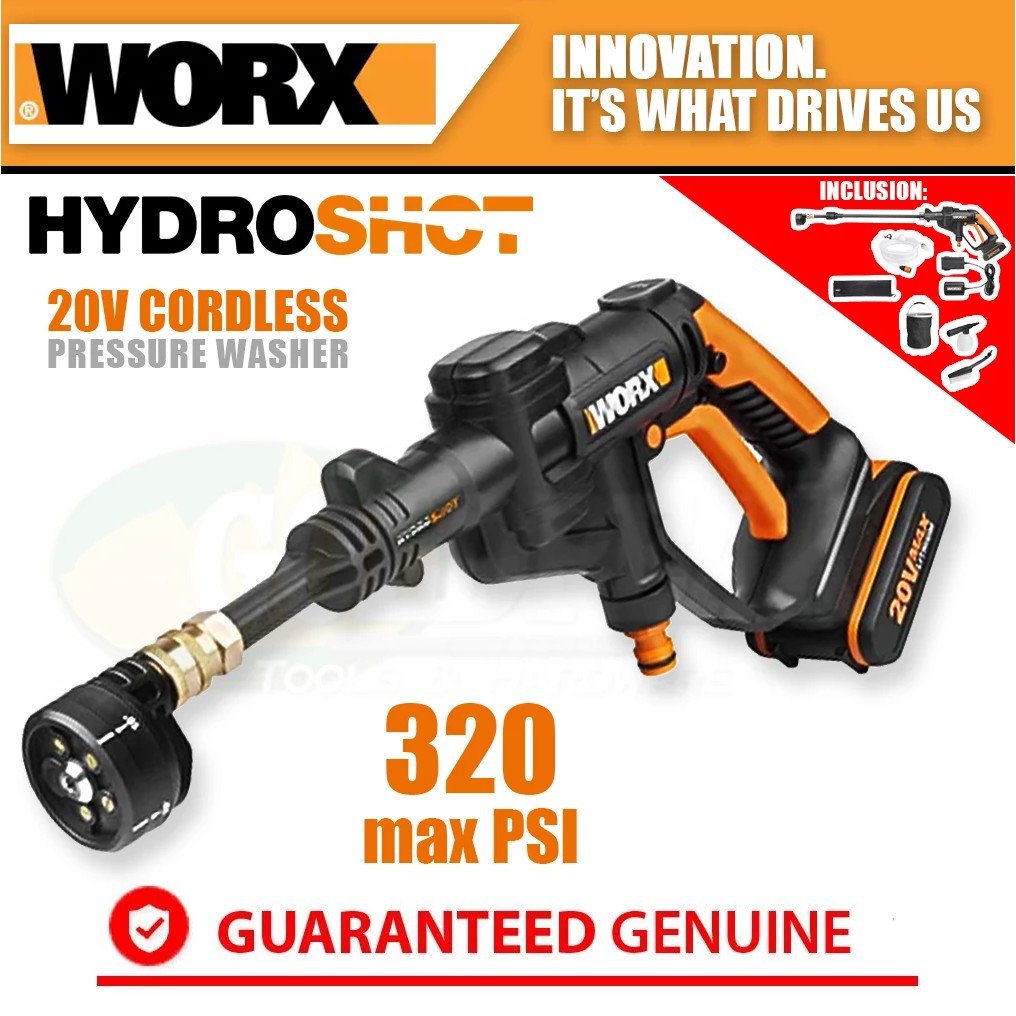 Hydroshot wg6251 Hydroshot wg6259 Hydroshot wg6254 Hydroshot wg6252. Advertentie Vind kwaliteitsproducten en vergelijk prijzen van retailers bij ProductShopper. WORX WG629E1 20 V Hydroshot Portable Pressure Cleaner The WORX hydroshot redefines the way you spray water to remove dirt dust and grime anytime anywhere.