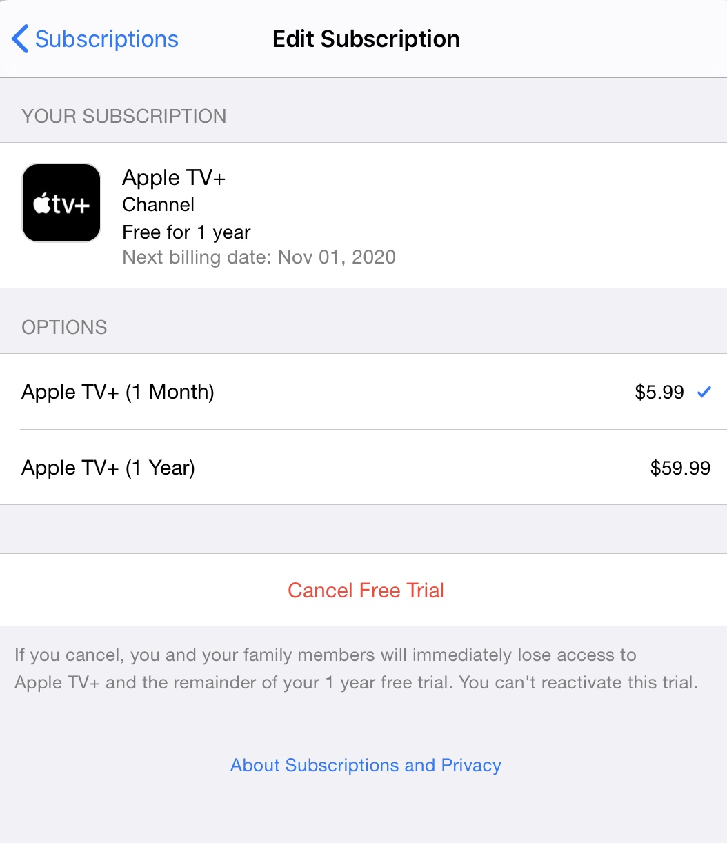 How does apple tv free trial work. Its also worth noting that once your free year ends youll automatically be subscribed for a monthly fee of 499. If you dont see that notice try tapping the Try Apple TV free optionafter selecting it tap the option Enjoy 1 Year Free. However starting from today users who buy a new iPhone iPad iPod Touch Apple TV 4K or Apple TV HD can enjoy one year of the service for free.