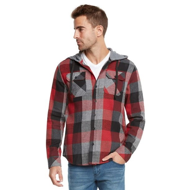 Gioberti Gioberti Men S Removable Hoodie Plaid Checkered Flannel Button Down Shirt Walmart Com Walmart Com