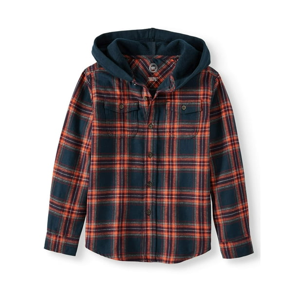 Wonder Nation Wonder Nation Boys Long Sleeve Hooded Flannel Button Down Shirt Sizes 4 18 Husky Walmart Com Walmart Com