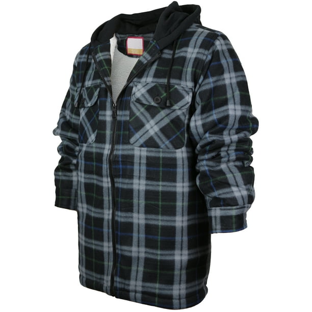 Vkwear Men S Heavyweight Flannel Zip Up Fleece Lined Plaid Sherpa Hoodie Jacket E02 Black Grey Green L Walmart Com Walmart Com