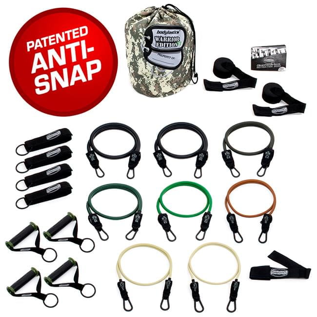 Bodylastics Patented Anti Snap Combat Ready Warrior Edition Resistance Band Sets Come With 6 Or 8 Exercise Tubes Heavy Duty Components A Small Anywhere Anchor A Bag And A User Book One Bag